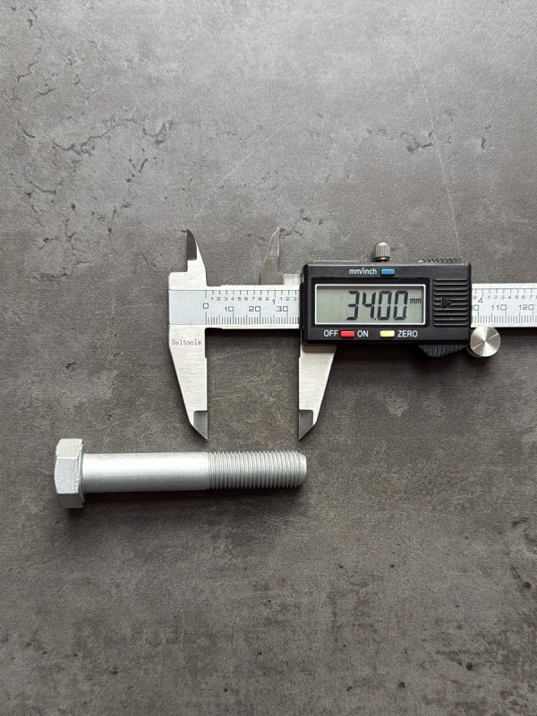 Болт с шестигранной головкой, высокопрочный, мелкий шагом резьбы. Стандарт: таблица FIAT-ВАЗ 10312. Диаметр резьбы: 12 мм. Шаг резьбы: 1,25 (мелкий). Длина болта: 25 мм. Длина резьбы: 25 мм. Размер "под ключ": 19 мм. Класс прочности: 10.9. Покрытие: цинк-ламель. В соответствии со стандартами, длина болта измеряется от опорной части головки до конца фаски, которой завершается его резьбовой стержень.