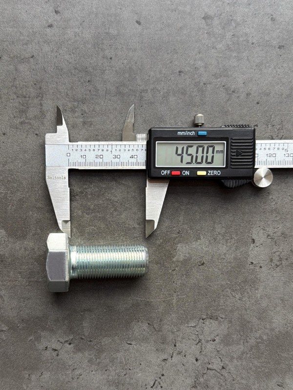 Болт с шестигранной головкой, высокопрочный, мелкий шагом резьбы. Стандарт: таблица FIAT-ВАЗ 10312. Диаметр резьбы: 12 мм. Шаг резьбы: 1,25 (мелкий). Длина болта: 25 мм. Длина резьбы: 25 мм. Размер "под ключ": 19 мм. Класс прочности: 10.9. Покрытие: цинк-ламель. В соответствии со стандартами, длина болта измеряется от опорной части головки до конца фаски, которой завершается его резьбовой стержень.