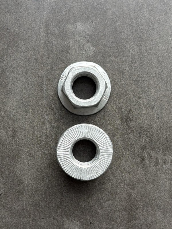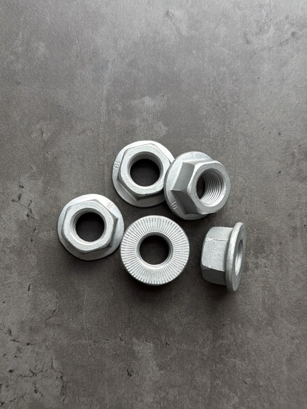 Гайка с фланцем М10х1,25 высокопрочная, мелкий шаг резьбы. Гайка российского производства. Стандарт: DIN 6923. Применяемость: многофункциональная, автомобильная. Диаметр резьбы: 10 мм. Шаг резьбы: 1,25. Высота: 10 мм. Размер "под ключ": 15 мм. Класс прочности: 8. Покрытие: цинк.