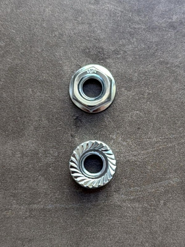 Особенностью данной модели является наличие насечек на поверхности гайки, которые обеспечивают дополнительное сцепление с поверхностью и предотвращают самопроизвольное откручивание. Кроме того, благодаря своей конструкции, гайка соответствует стандарту DIN 6923.