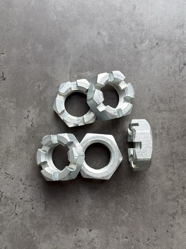 Гайка корончатая, прорезная низкая М30х1,5 ГОСТ 5919-73, класс прочности 10, покрытие цинк ГОСТ 5919-73