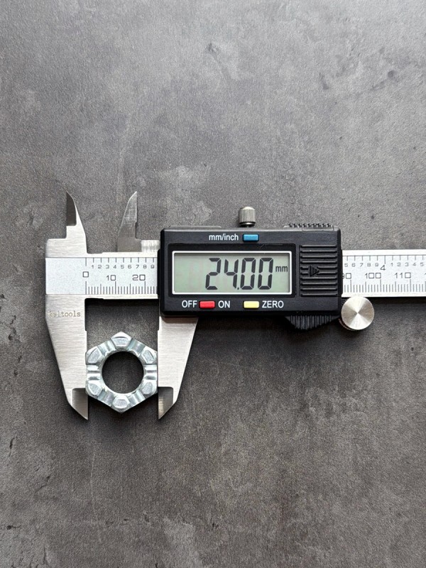 Гайка М24х1,5 корончатая, мелкий шаг резьбы. Гайка российского производства. Артикул: 853514. Применяемость: гайка рулевого пальца КАМАЗ. Диаметр резьбы: 24 мм. Шаг резьбы: 1,5. Высота: 20 мм. Размер "под ключ": 36 мм. Высота от опорной поверхности до основания прорези: 14 мм. Покрытие: цинк.