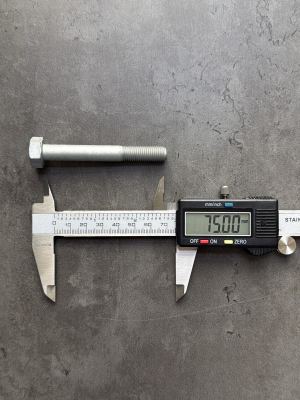 Болт с шестигранной головкой, высокопрочный, с мелким шагом резьбы. Болт российского производства. Стандарт: ГОСТ 7798-70. Можно использовать, как альтернативу Din 960. Диаметр резьбы: 10 мм. Шаг резьбы: 1,25. Длина болта: 75 мм. Длина резьбы: 26 мм. Размер "под ключ": 17 мм. Класс прочности: 10.9. Покрытие: цинк-ламель. В соответствии со стандартами, длина болта измеряется от опорной части головки до конца фаски, которой завершается его резьбовой стержень.